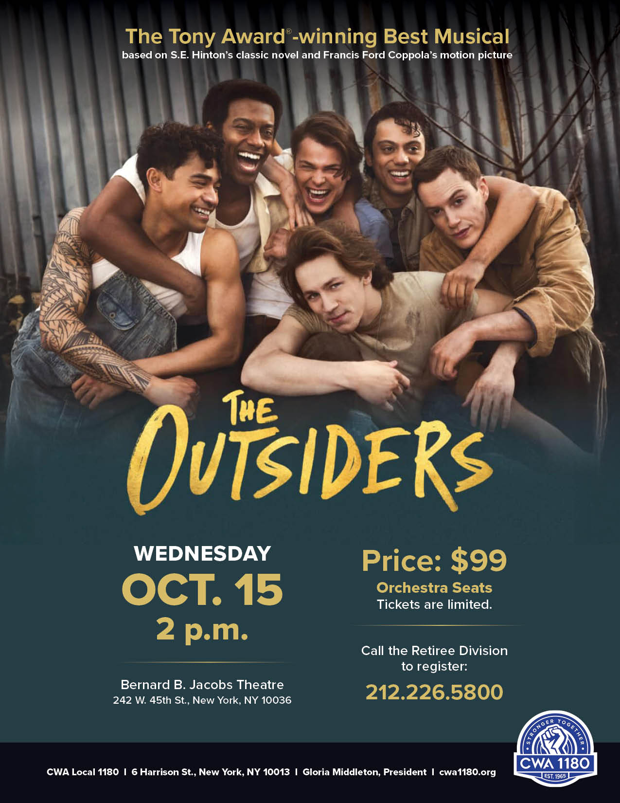 The Tony Award®-winning Best Musical based on S.E. Hinton’s classic novel and Francis Ford Coppola’s motion picture.